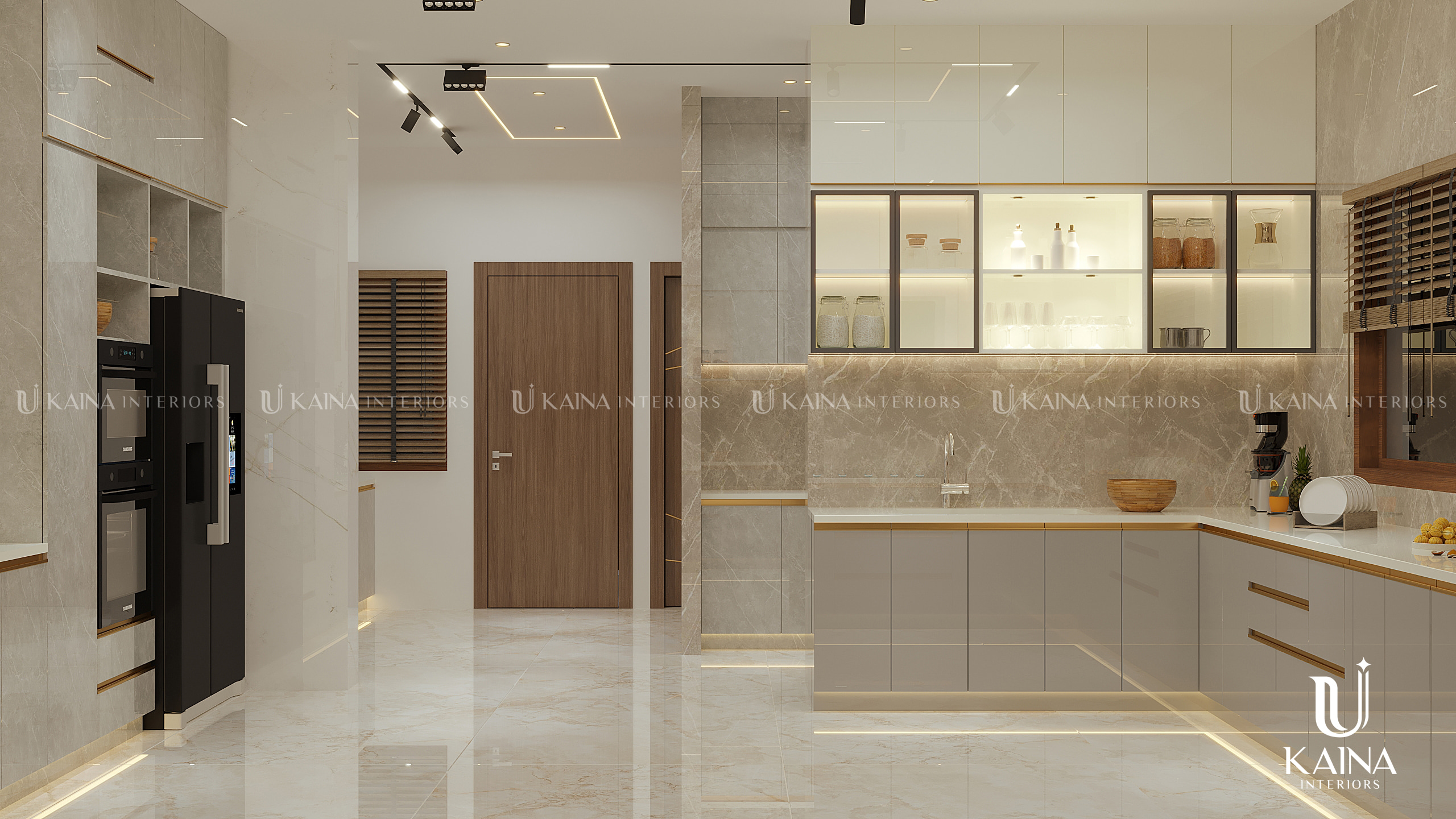At Kaina interiors, we specialize in designing modular kitchens that are effortless to work in and keeps you organized. Our interior designers incorporate 100% customized furniture, durable counter tops, well placed sinks and modern appliances for L-shaped, U-shaped kitchen models that perfectly balance style and functionality.